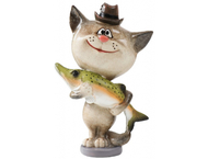 Сувенир полистоун «Малышка с каре, губки трубочкой, с котом-рыбой»