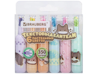 Набор маркеров-текстовыделителей Brauberg, 6 цветов, Cute Cats Pastel