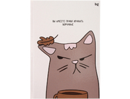 Формат ≈А5. Обложка твердая картонная, глянцевое ламинирование. Внутренний блок — бумага белая офсетная, серое графление, белое поле по периметру. Сшита. В деталях указан размер, количество листов, тип графления.