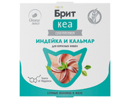 Вся линейка кормов «Брит Кеа» построена на индейке как основном белке, с добавками разных морепродуктов. Это уникальная фишка линейки — моно-белковый состав на базе индейки + сочные волокна и желе, обогащенные спирулиной и таурином, создающие функциональное лакомство для взрослых кошек и котят.