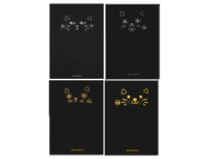 Обложка с приятным на ощупь покрытием. Внутренний блок — бумага черная офсетная для записей и зарисовок. Блок прошит.