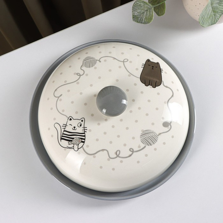 Блинница-тарелка доломитовая «Уютные коты», 23×10 см