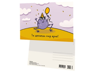 Красочная открытка с пожеланиями. В деталях указан размер в сложенном виде.