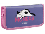 Изготовлен из полиэстера. На верхней откидной крышке расположены крепления-резиночки для канцелярских принадлежностей. Закрывается на молнию по периметру. Без наполнения.