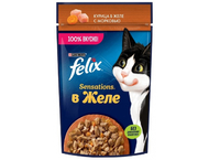Purina Felix Sensations — влажный корм для взрослых кошек. Изготавливается из качественных ингредиентов, порадует кошку аппетитным видом, привлекательным ароматом и невероятным вкусом. Корм является источником необходимых Омега-6 жирных кислот с правильным сочетанием минеральных веществ и витаминов. Не содержит искусственных ароматизаторов, красителей.