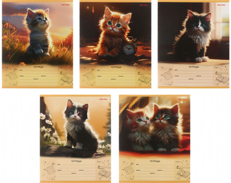 Тетрадь школьная А5, 12 л. на скобе «Котики в лучах солнца», 163×203 мм, клетка, ассорти