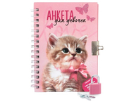 Формат ≈А6. Обложка из твердого мелованного картона. Внутренний блок — бумага офсетная с цветной печатью. Закрывается на замочек. В деталях указан размер, количество листов, тип графления.