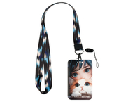 Бейдж пластиковый на тесьме с карабином Meshu, 50×80 мм, Fancy Cat