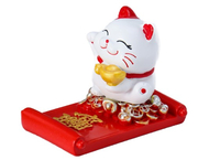 Яркий кот-талисман станет вашим личным хранителем удачи и верным помощником. Он всегда рядом, чтобы мягко и надёжно держать ваш смартфон или планшет под идеальным углом для видео-звонков, чтения или просмотра фильмов. Фигурка воплощает древний символ процветания — манэки-нэко, приглашающий в дом счастье и благополучие. Изготовлена из прочного и детализированного полистоуна.