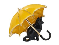 Брошь «Кошка под зонтом», 7 см, цветная в золоте