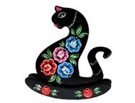 Деревянный сувенир кошка-качалка изготовлен и покрыт вручную по правилам городецкой росписи. Изделие станет эффектным подарком и украшением дома.