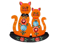 Деревянный сувенир кошка-качалка изготовлен и покрыт вручную по правилам городецкой росписи. Изделие станет эффектным подарком и украшением дома.