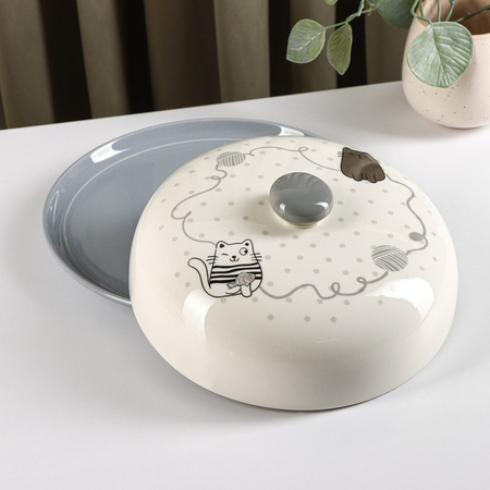 Блинница-тарелка доломитовая «Уютные коты», 23×10 см