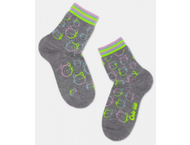 Носки детские из хлопка, с рисунками. В составе есть волокно Lycra — превосходно растягиваются во всех направлениях, восстанавливают свою первоначальную форму раз за разом, медленно изнашиваются, не съезжают с ноги во время носки и не оставляют красных следов от резинки. Состав: хлопок 72%; полиамид 25,5%; эластан 2,5%.