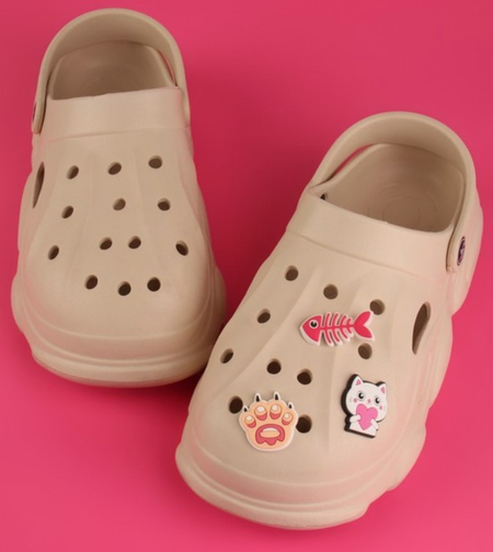 Аксессуары для обуви идеально подойдут для самых ярких и модных. Разнообразить свой образ или повседневную обувь помогут данные милые изделия, необходимо только вставить их в отверстия сабо или тапочек, как показано на фото. Такие украшения будут здорово смотреться как на детях, так и на взрослых.