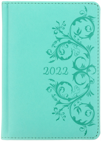 Формат ~А5. Обложка из мелованного картона. Внутренний блок: бумага офсетная белая, одноцветная печать. Есть поле для заполнения даты.